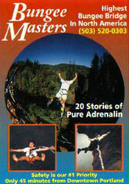 Interested in Bungee Jumping off of the tallest Bungee bridge in North America? Bungee dot com and Bungee Masters can help you fulfill your high-altitude dreams by pushing you off of a bridge. Not daring enough for you? Try Bungee jumping out of a helicopter...but that's not the scary part. Better sit down before we tell you that you're over the open maw of a volcano. That's right...we're THOSE Bungee guys. |